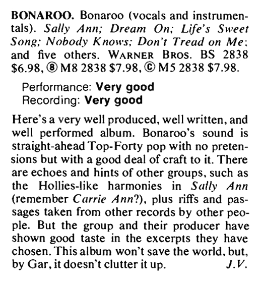 Stereo Review assessment of Bonaroo (featuring Troiano on guitar)