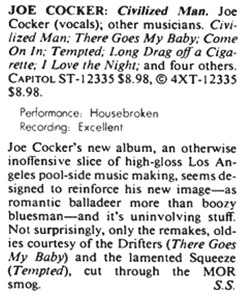 Review of Joe Cocker's Civilized Man (featuring Troiano on guitar) from Stereo Review