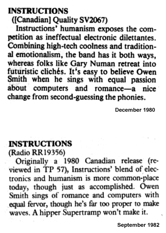Trouser Press capsule reviews of Instructions (featuring Troiano on guitar)