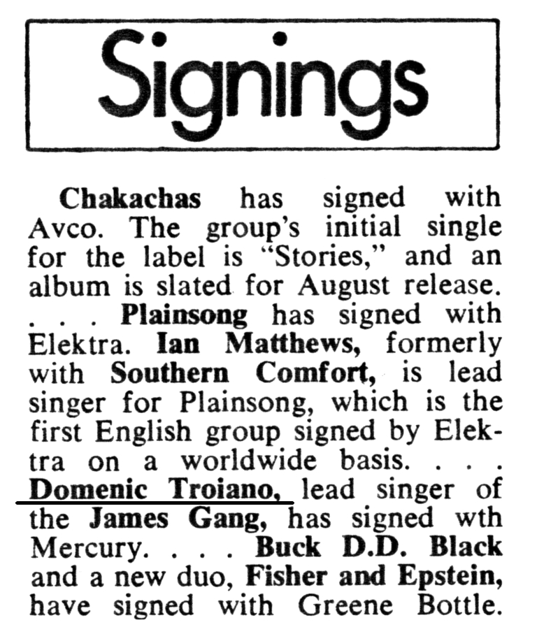 Mention of the Troiano-era James Gang in Rolling Stone album review, April 1973