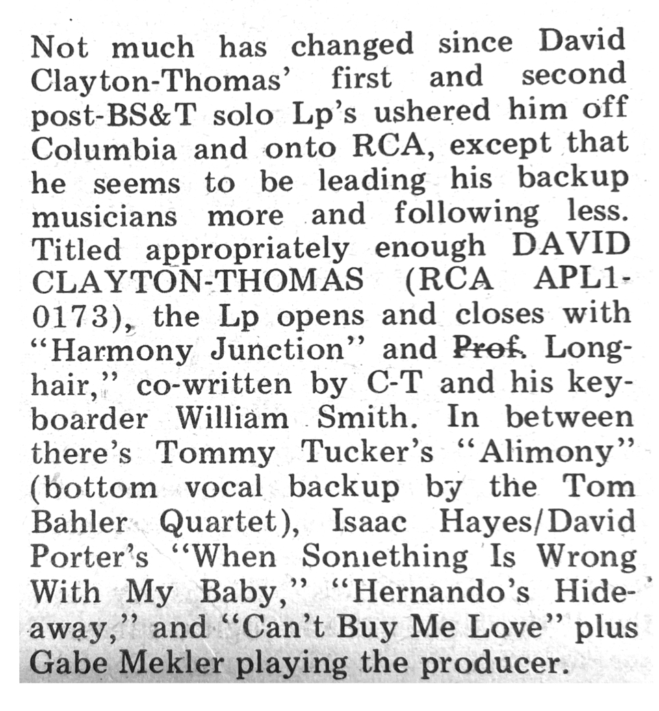 Capsule review of David Clayton-Thomas (featuring Troiano on guitar) from Zoo World